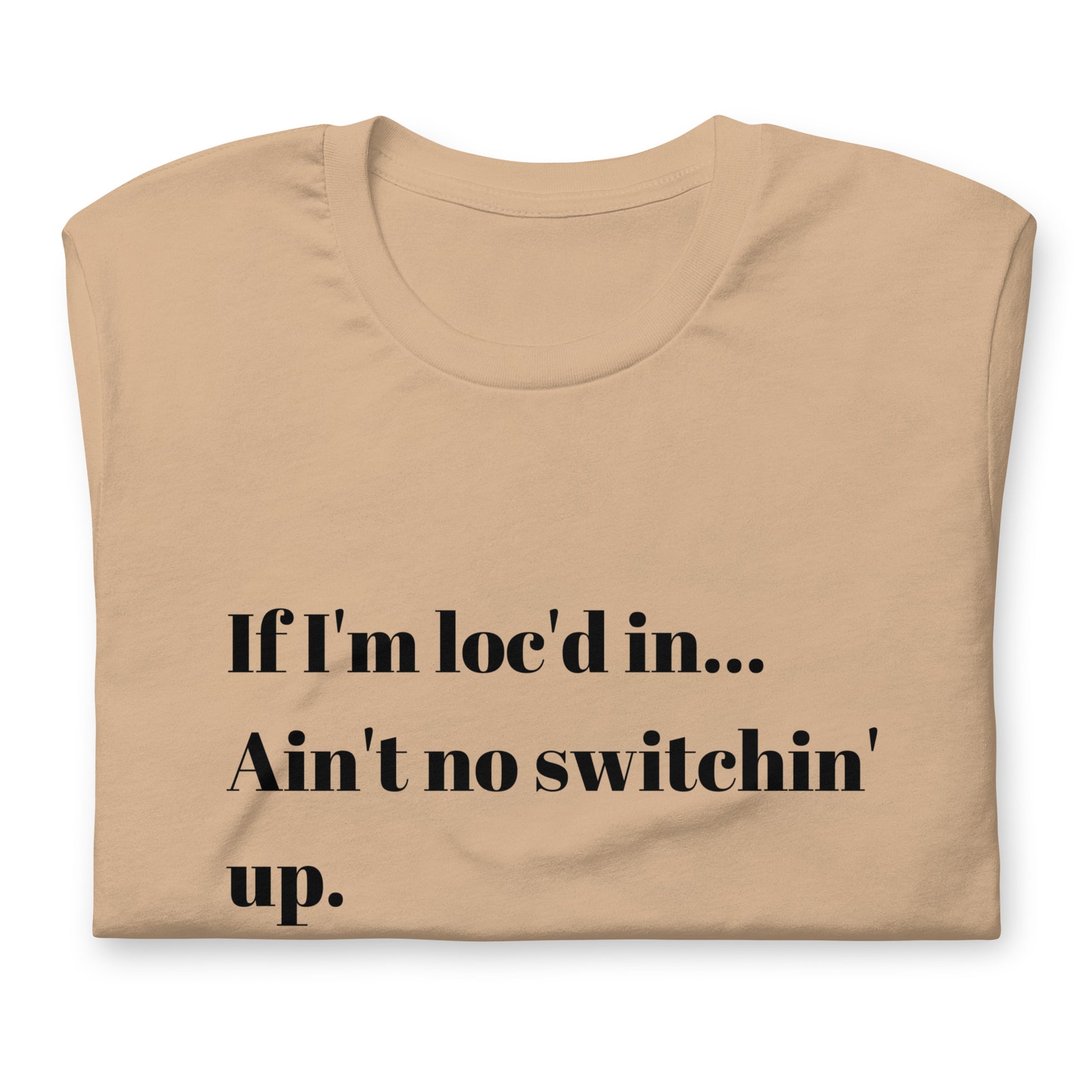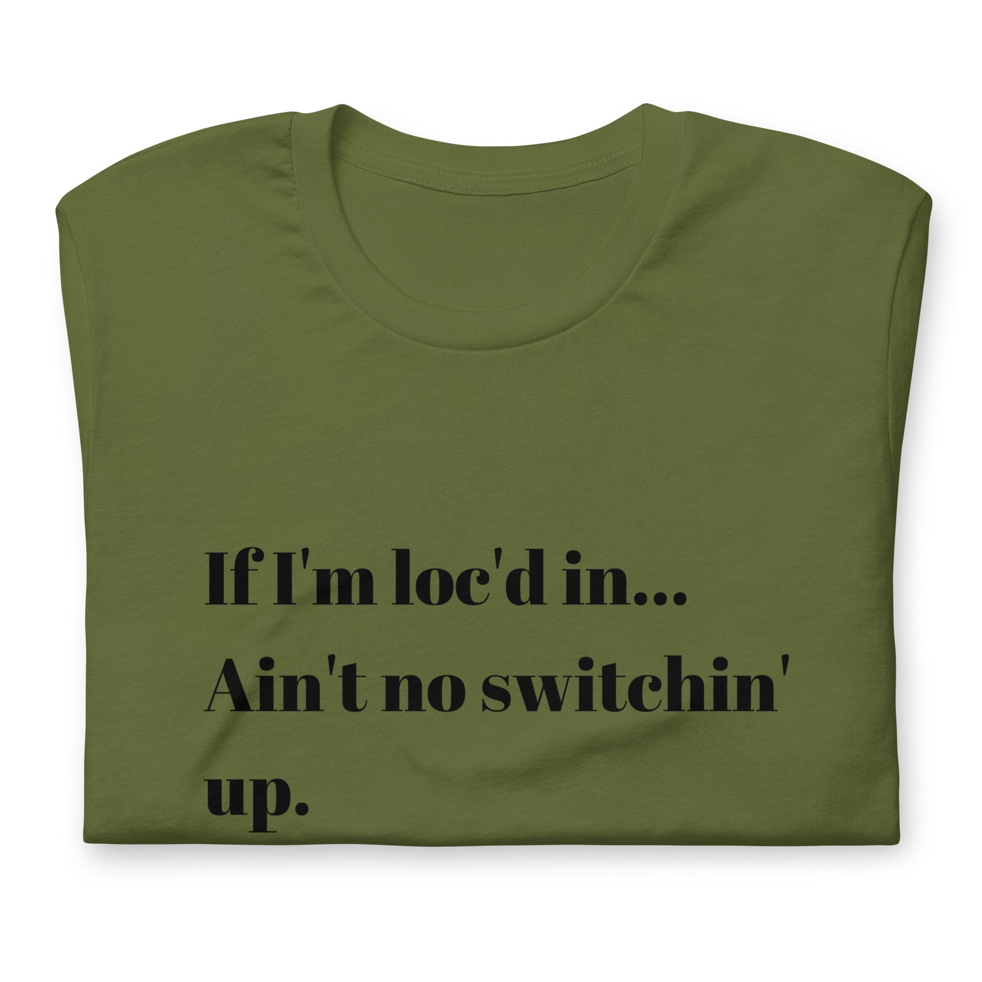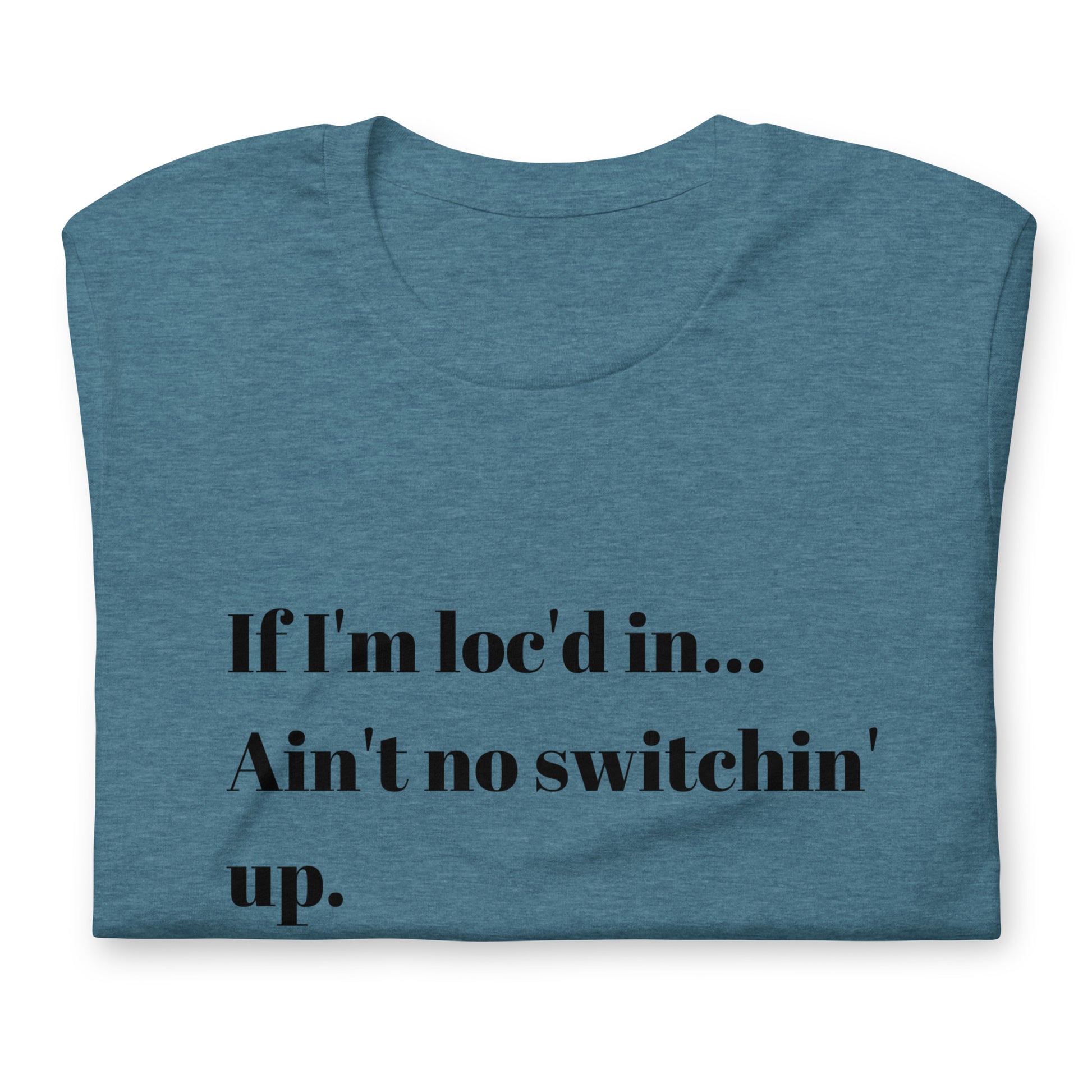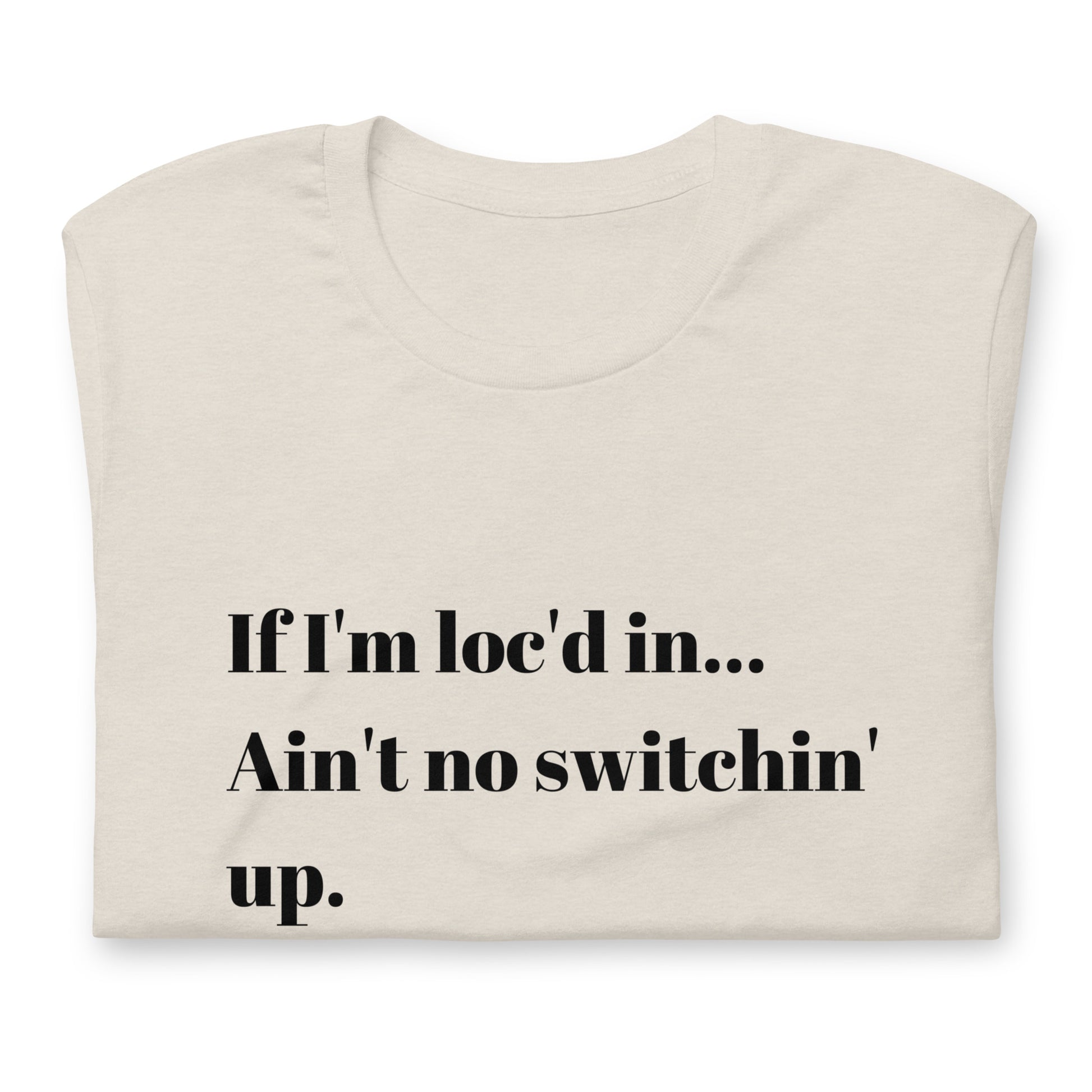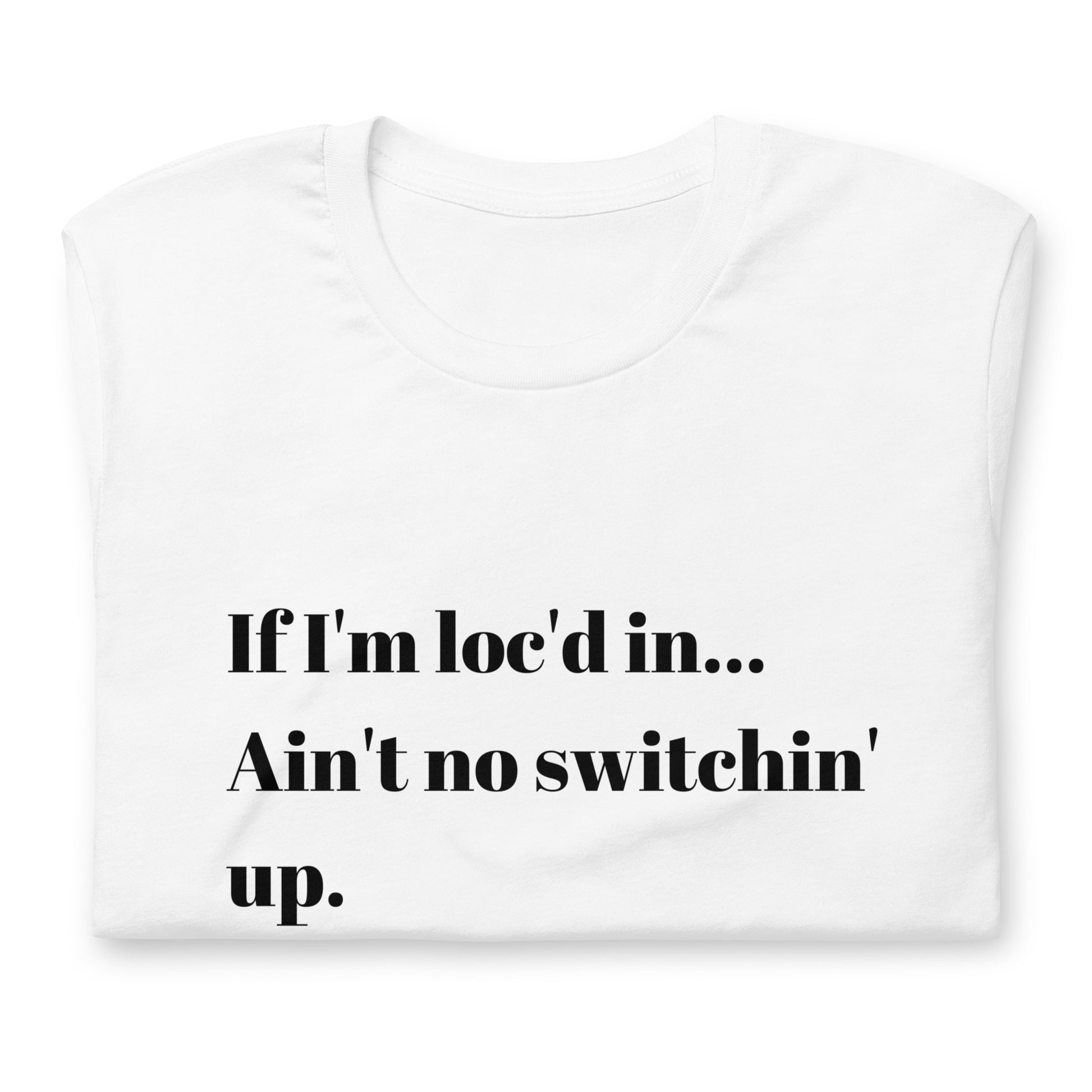 Unapologetically bold and authentically you, our "If I'm loc'd in..Ain't no switchin' up" t-shirt is the perfect way to show your commitment to your roots and your unwavering sense of self. Crafted from high-quality cotton and featuring a powerful message that celebrates the strength and resilience of the loc community, this t-shirt is the perfect addition to any casual wardrobe. Whether you're running errands or just kicking back with friends, you can be sure that our "If I'm loc'd in..Ain't no switchin' up" t-shirt will make a statement wherever you go. So why wait? Grab yours today and let the world know that you're a force to be reckoned with - and that when it comes to your roots, there's no compromising. With this t-shirt, you can wear your commitment to your locs with pride and show the world that you're a true loc warrior. *Unisex style tee, Queens if you would like a more snug fit please size down