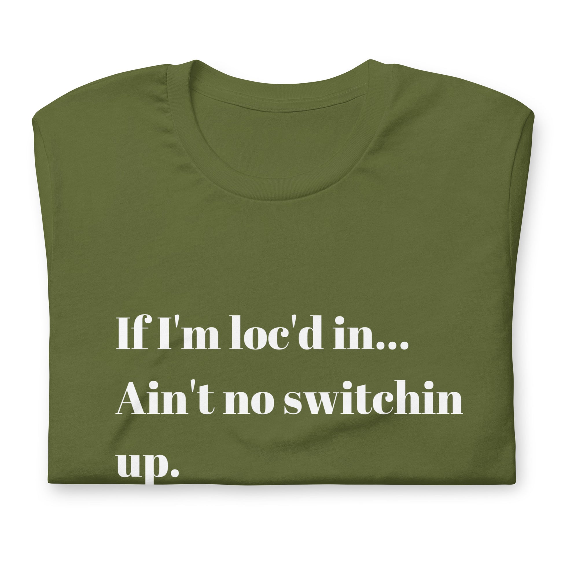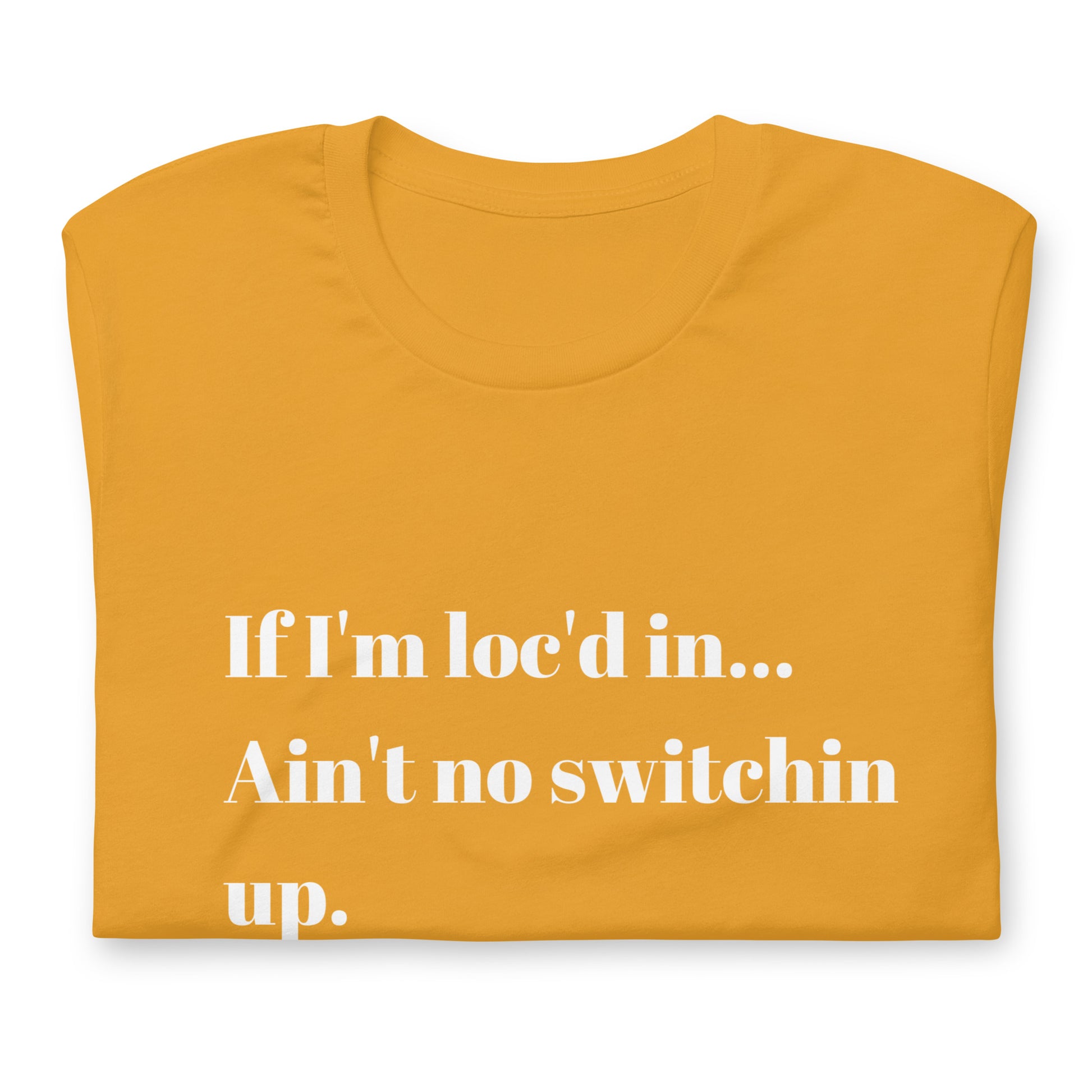 Unapologetically bold and authentically you, our "If I'm loc'd in..Ain't no switchin' up" t-shirt is the perfect way to show your commitment to your roots and your unwavering sense of self. Crafted from high-quality cotton and featuring a powerful message that celebrates the strength and resilience of the loc community, this t-shirt is the perfect addition to any casual wardrobe. Whether you're running errands or just kicking back with friends, you can be sure that our "If I'm loc'd in..Ain't no switchin' up" t-shirt will make a statement wherever you go. So why wait? Grab yours today and let the world know that you're a force to be reckoned with - and that when it comes to your roots, there's no compromising. With this t-shirt, you can wear your commitment to your locs with pride and show the world that you're a true loc warrior. *Unisex style tee, Queens if you would like a more snug fit please size down